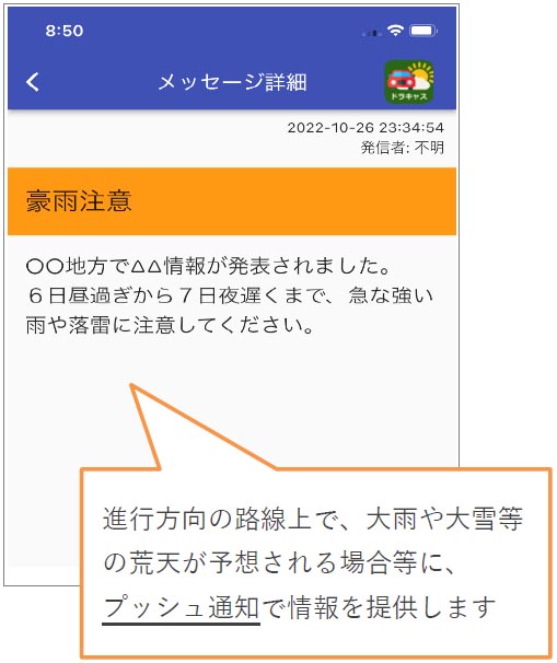 進行方向の天気が分かるドライバー向けアプリ「ドラキャス」