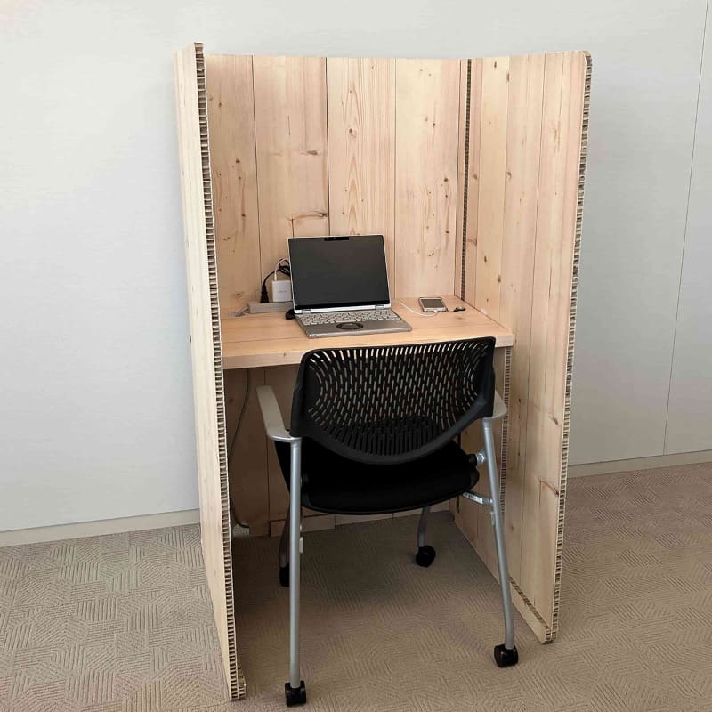 プラス、セミクローズド集中ブース。視界を遮りつつ周囲に気を配れる