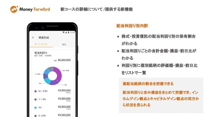 マネーフォワード ME、資産形成コースに新機能「配当予測」