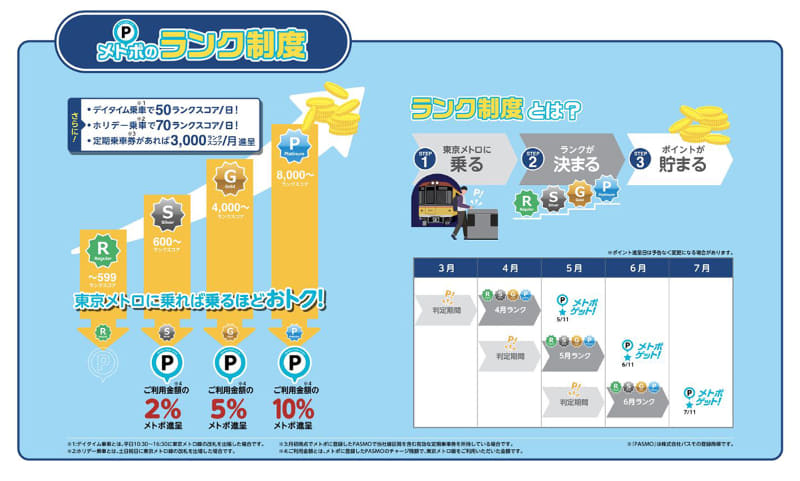 東京メトロのポイントにランク制度、運賃を最大10%還元