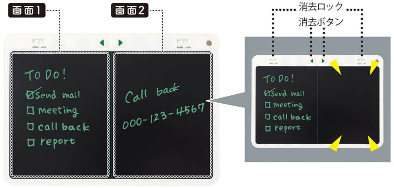 キングジム、2画面分割の新型「ブギーボード」(3/11)