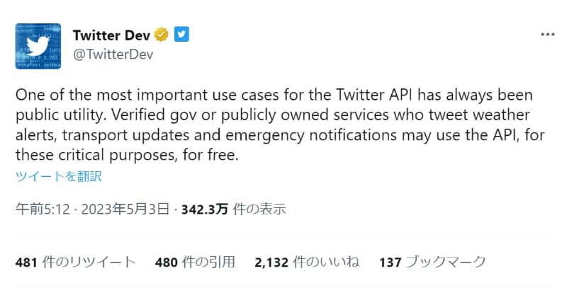 X(Twitter)、公的機関の防災・災害情報はAPI無料利用可