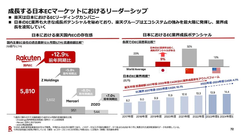 • 楽天、モバイルも23年単月黒字へ。国内ECはナンバーワン