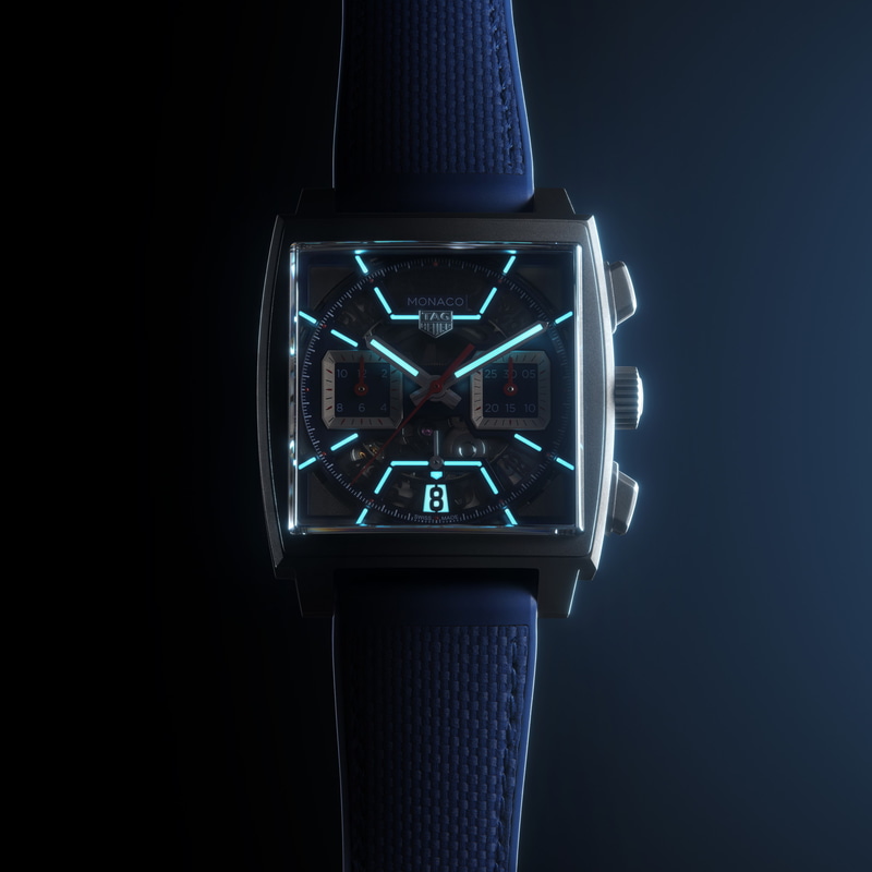 • タグ・ホイヤー モナコ、スケルトンダイヤルに新色ダークブルー