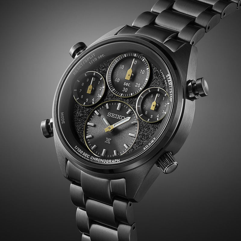 • セイコー スピードタイマー、機械式にマットブラックな冬季競技デザイン