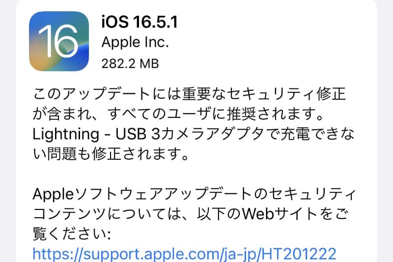 iOS 16.5.1(c)公開 全ユーザー推奨のセキュリティ修正