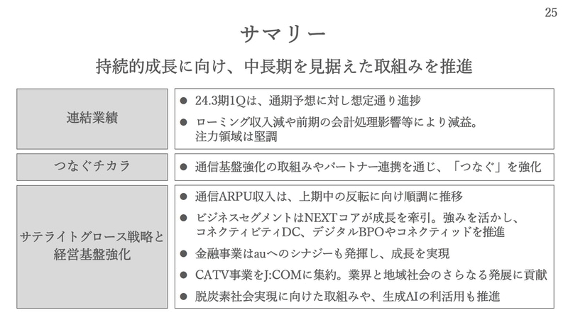 KDDI第1四半期決算 注力領域は堅調、上期ARPU反転を狙う(5/6)