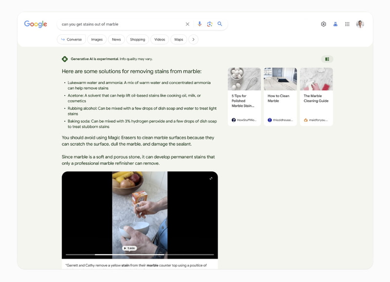 Google、生成AI検索「SGE」でWeb記事要約など新機能