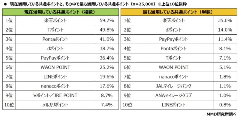 ポイントサービス、1番使われる「楽天」、満足度は「イオン」