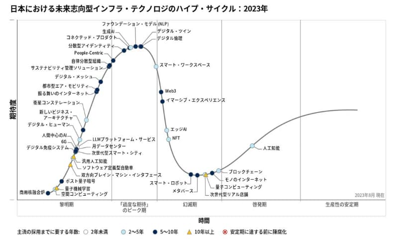 生成AIは「過度な期待のピーク」、Web3は幻滅期 23年版ハイプサイクル