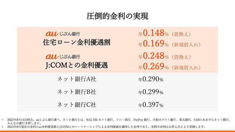 • au携帯とセットで住宅ローン金利を引き下げ、変動0.31%。auじぶん銀行