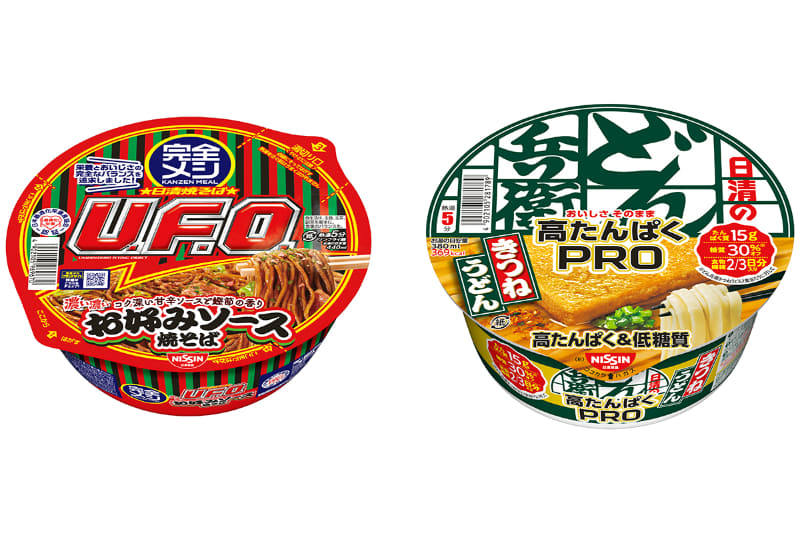 日清、本当に焼く「焼そばU.F.O.」と具だけの「どん兵衛」
