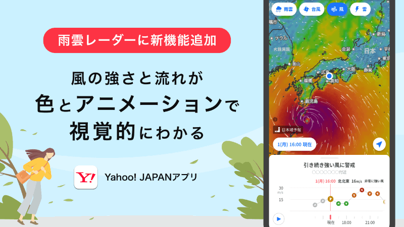 Yahoo!天気、風の動きと強さが視覚的にわかる新機能「風レーダー」