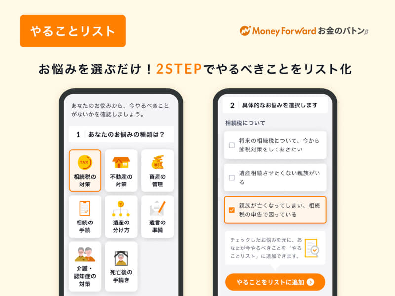 マネフォ、"相続"をやることリストで可視化 「お金のバトン」(7/10)