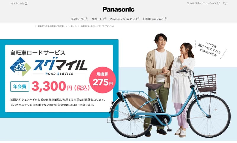 パナソニック、自転車ロードサービス「すぐマイル」 年3300円