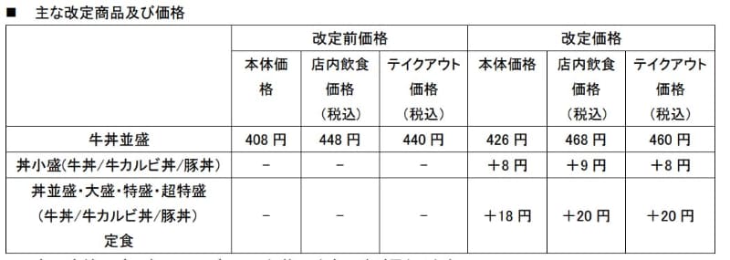 吉野家・はなまる、10月から値上げ
