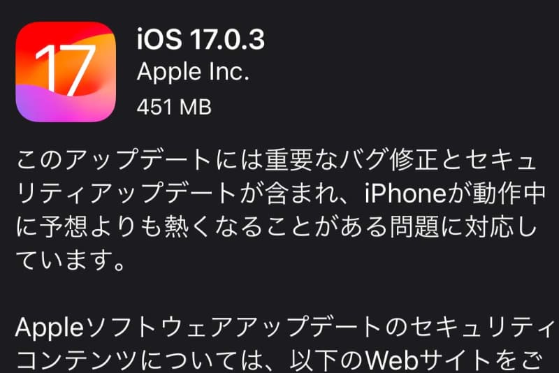 iOS 17.0.1/iOS 17.0.2公開 セキュリティと別のiPhoneからのデータ転送問題に対応