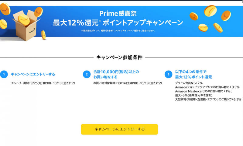 • アマゾン、10月14・15日に「プライム感謝祭」 ギフトカードチャージで0.5%還元