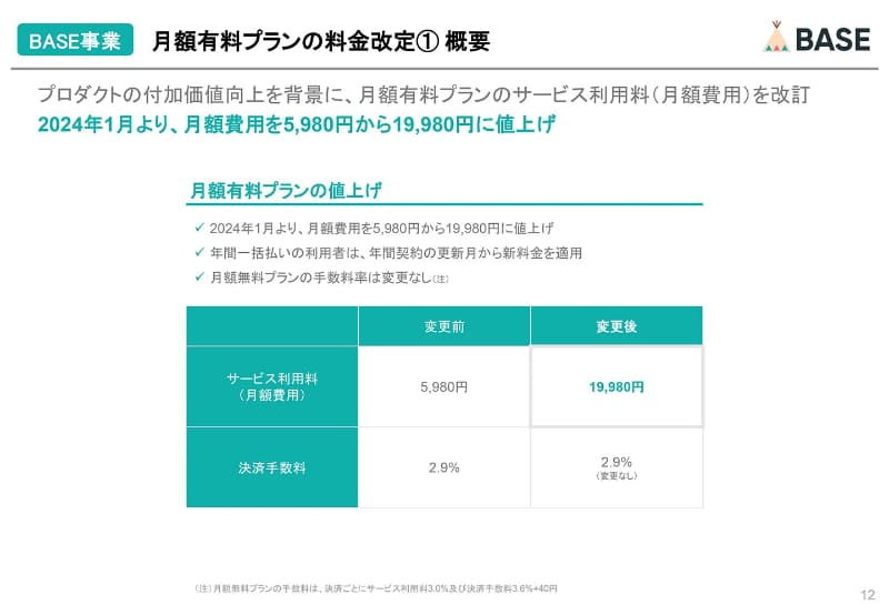 BASE、手数料を2.9%に抑えた新プラン。4月18日開始