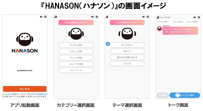 乗換案内のジョルダン、話せるチャットアプリ「ハナソン」