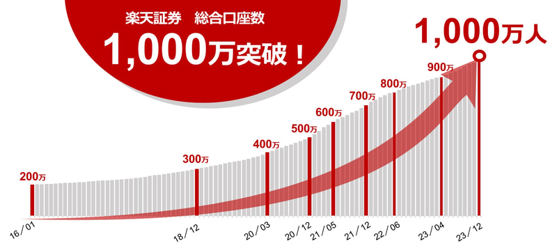 楽天証券、1100万口座突破 4カ月で100万口座増