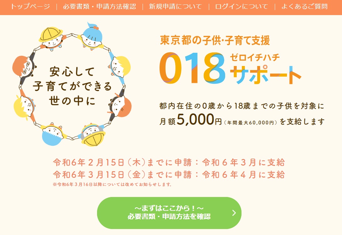 東京の子供給付金「018サポート」、6万円一括支給の申請は12月15日まで