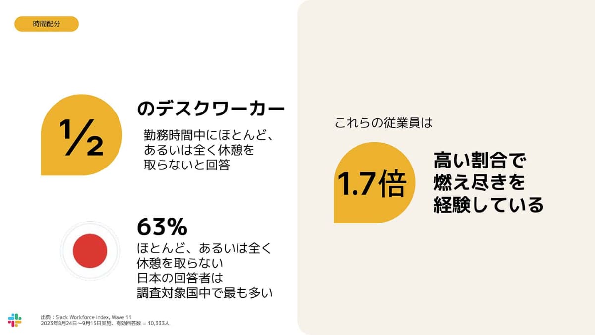定期的に休憩する従業員は生産性が高い Slackが働き方調査(4/8)
