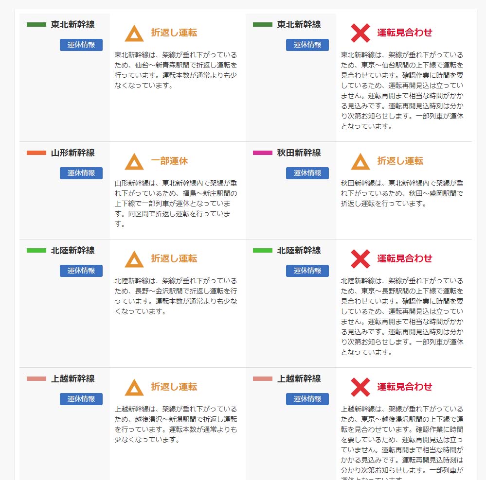 東北・上越・北陸新幹線、23日は終日運転見合わせ
