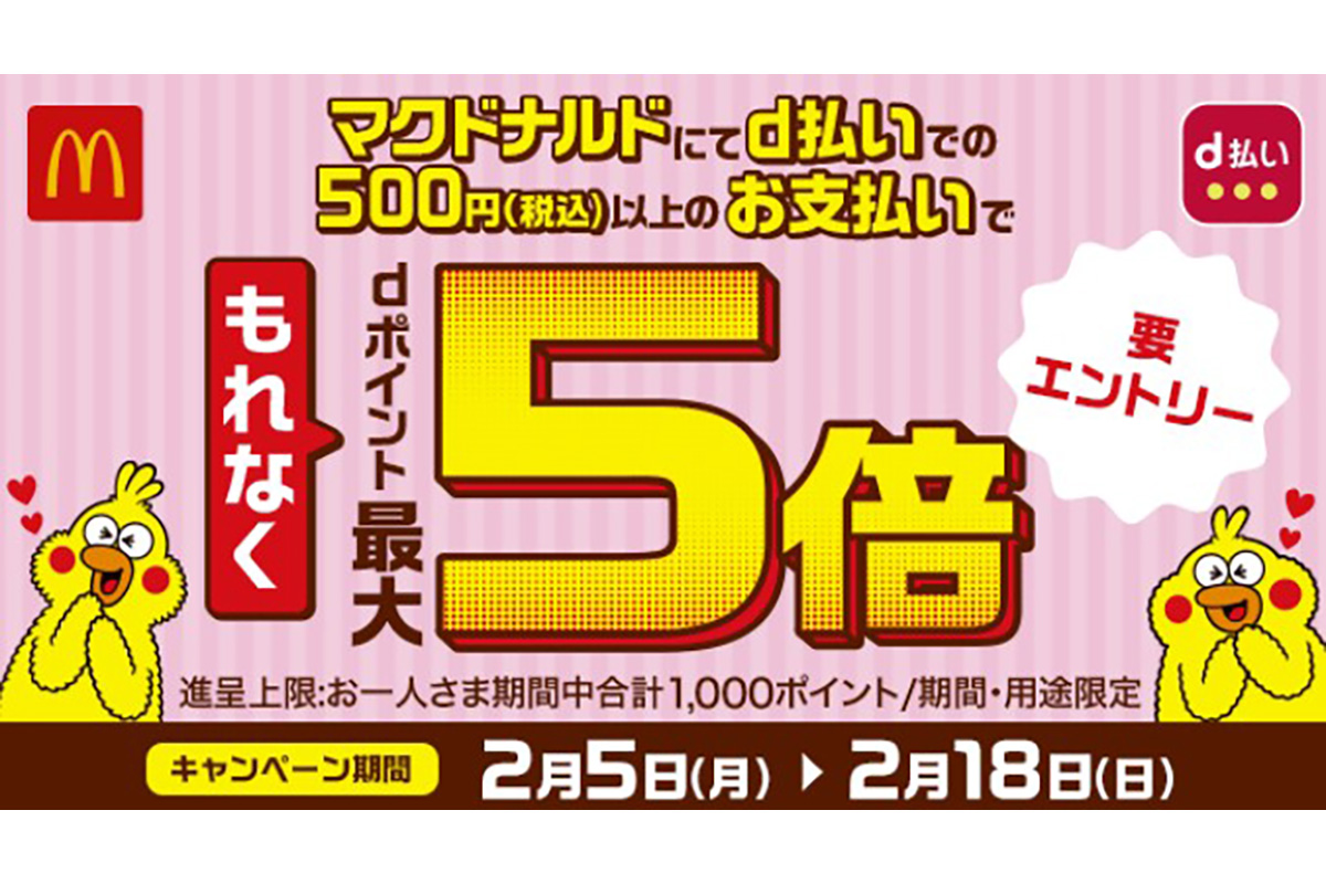 マクドナルド、「d払い」で最大5倍のdポイント モバイルオーダーも
