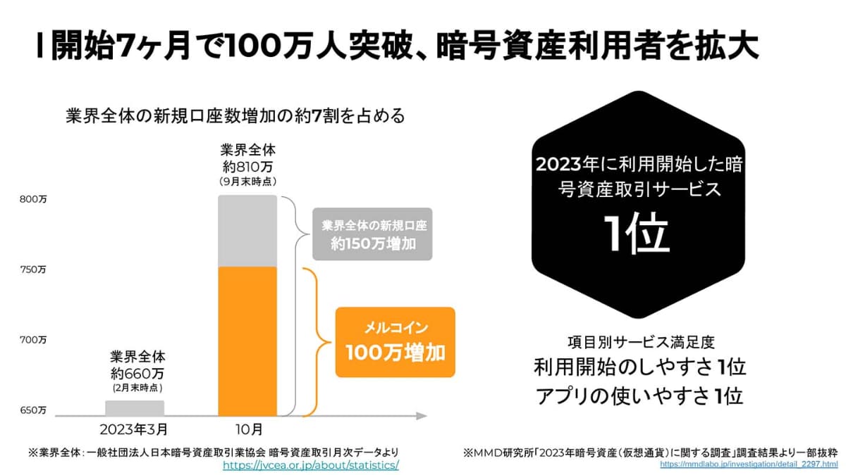 • メルカリのビットコイン取引、暗号資産口座開設数で業界1位に