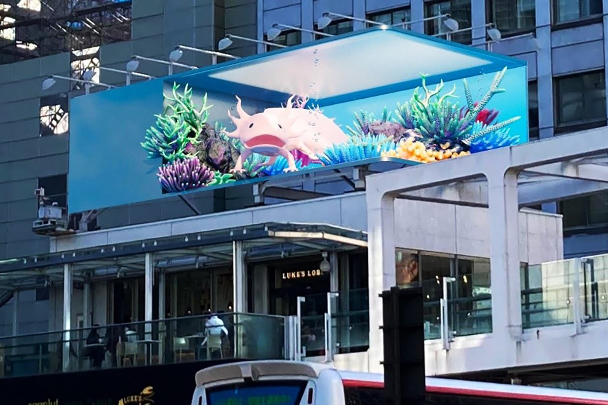 上野駅に幅9.5mの大型曲面サイネージ 3Dパンダが時報