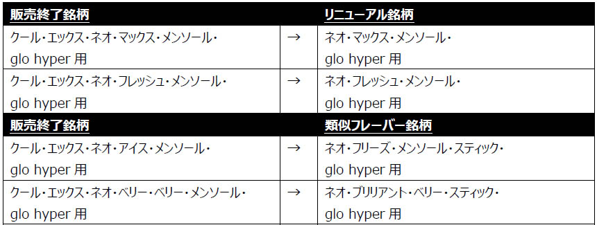 glo用「KOOL」、メンソール2種を「neo」に刷新