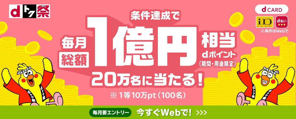 街の利用で「d払いスタンプ」 ハズレなしの毎月抽選で最大1万ポイント