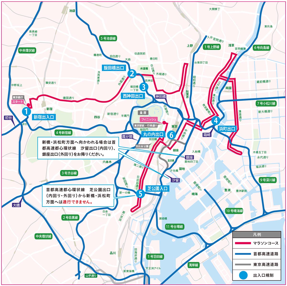 東京マラソン、都内各所で道路規制。首都高も一部出入口封鎖