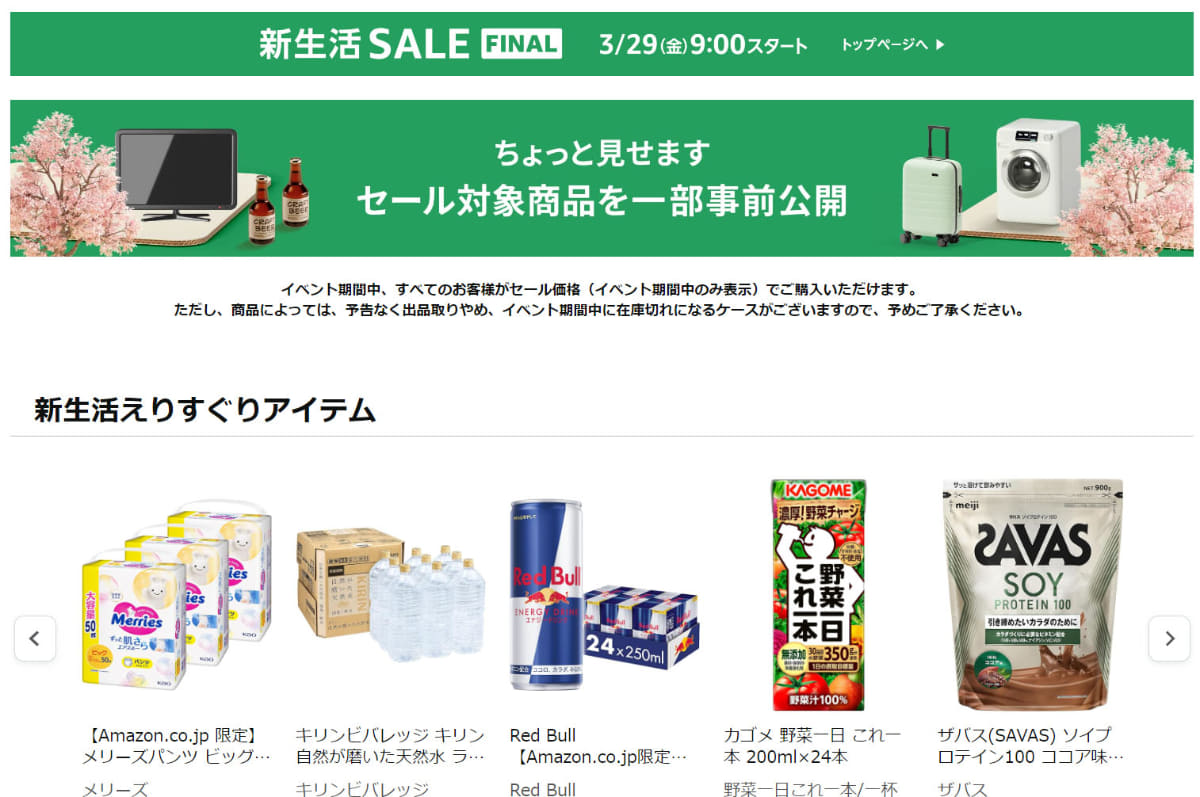 アマゾン、Amazonデバイスや日用品が安い事前セール 29日から「新生活SALE Final」