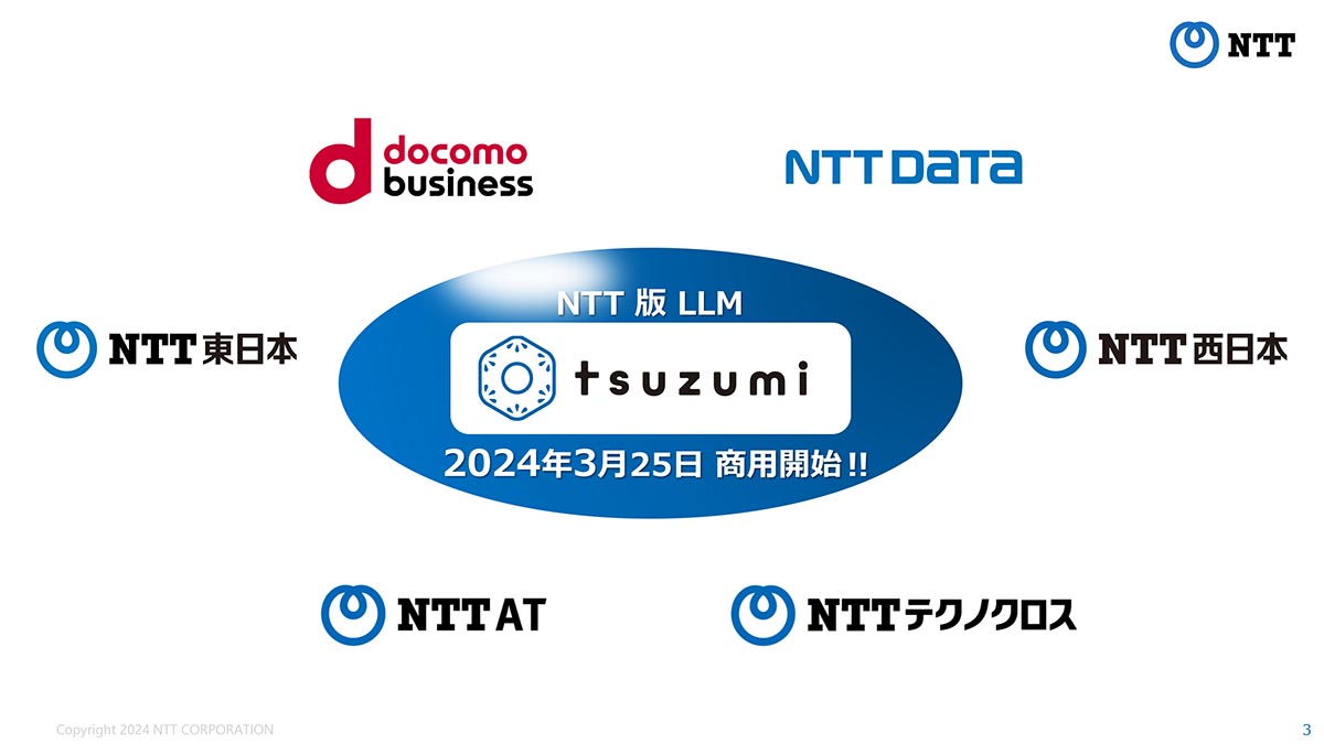 NTT版LLM「tsuzumi」サービス開始 軽量でも日本語処理はGPT-3.5超え(3/12)