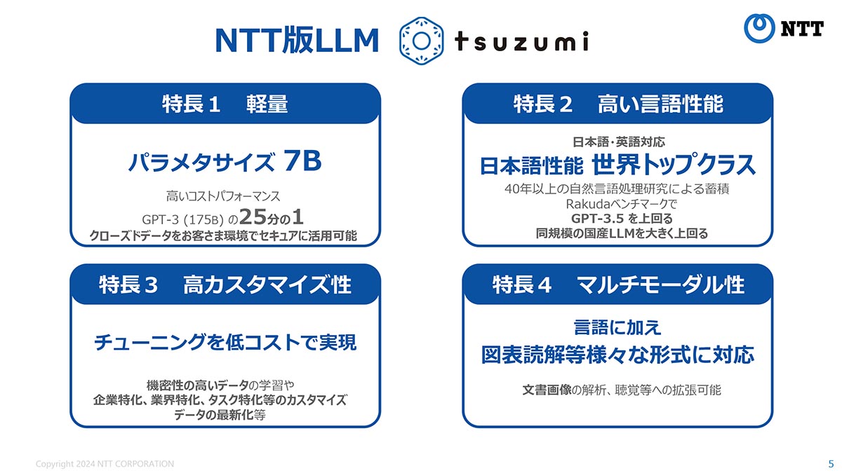 • NTT「tsuzumi 2」提供開始 30Bで強力な金融・医療知識