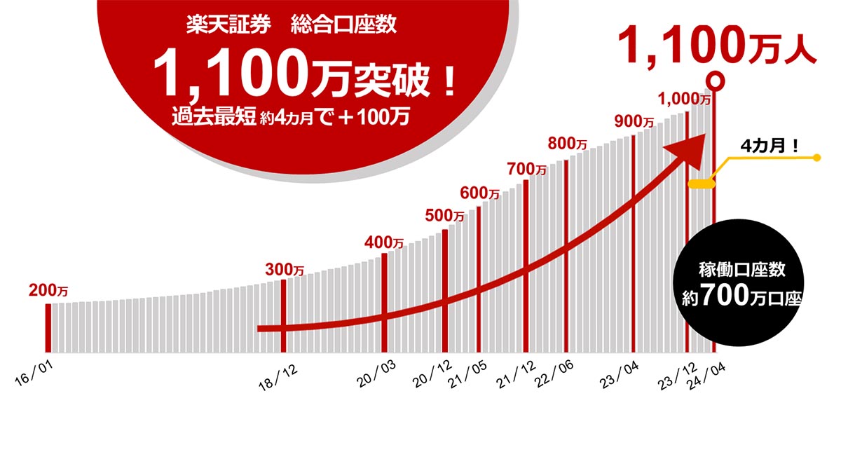 楽天証券、1000万口座突破 サービス開始から24年