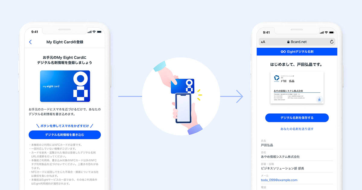 復活の“名刺アプリ”「Eight」 タッチ交換でデジタル名刺推進