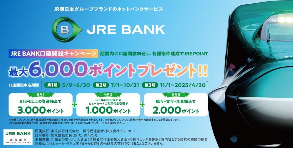 JRE BANKスタート 口座開設で最大6000ポイント