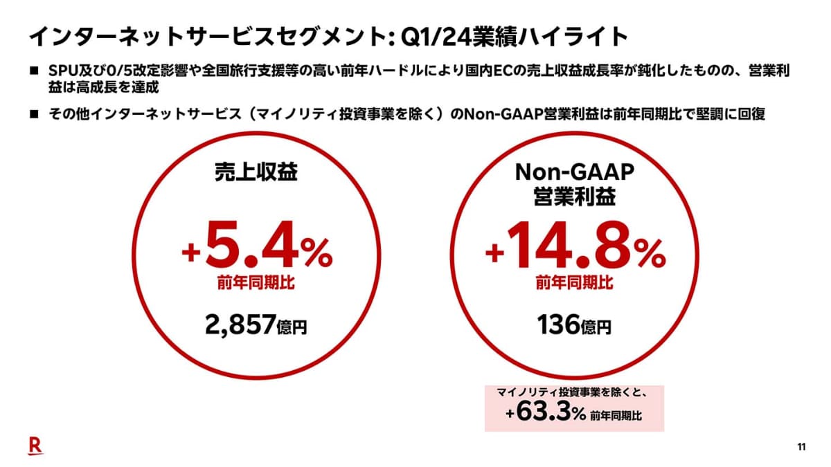 楽天、24年第1四半期決算は赤字幅縮小 モバイル成長に自信(3/20)