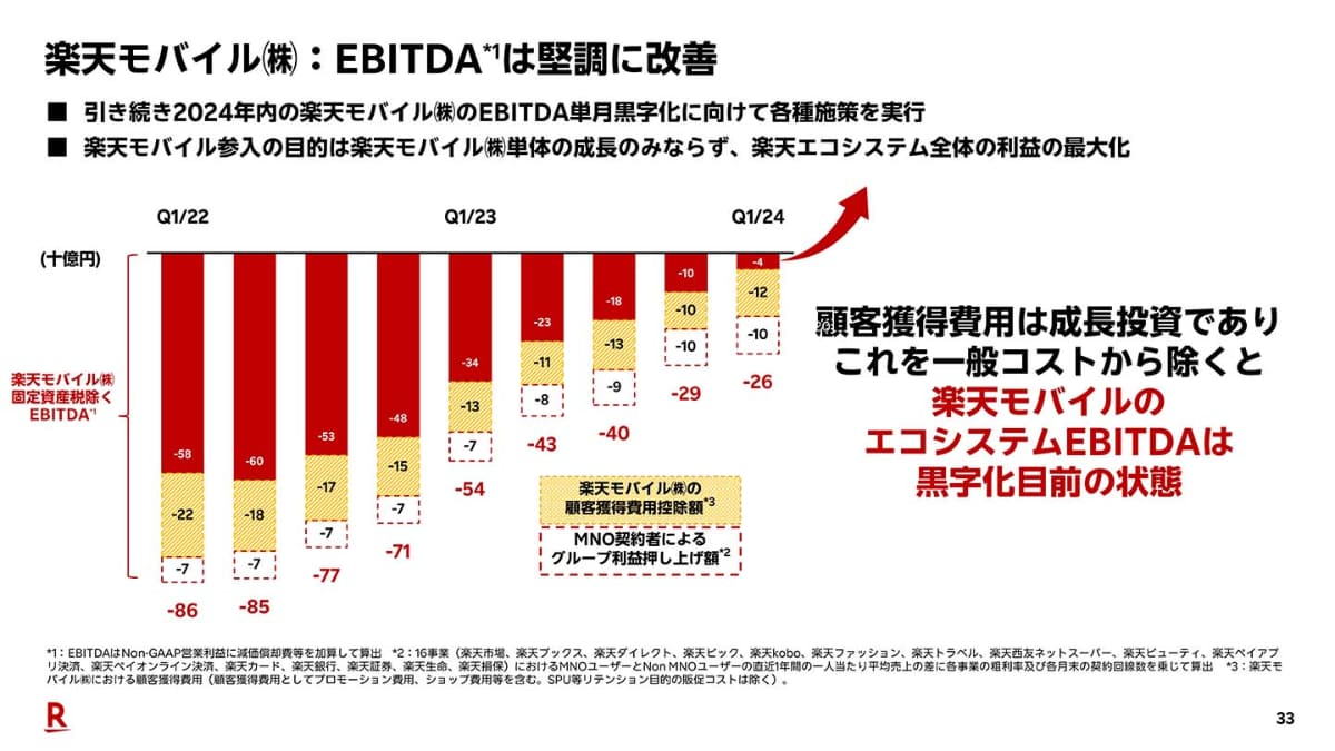 楽天、24年第1四半期決算は赤字幅縮小 モバイル成長に自信(12/20)