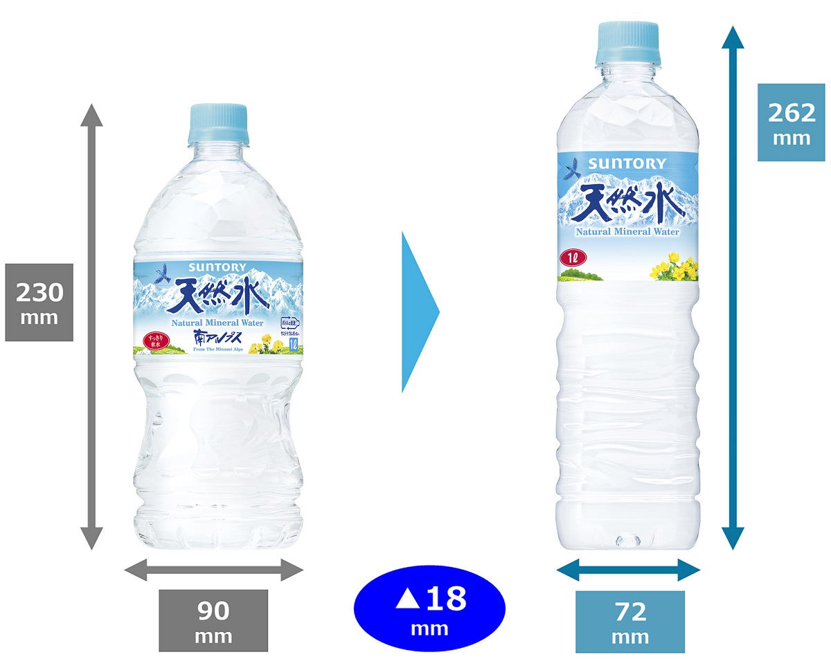 「サントリー天然水」2Lボトルがつぶしやすい新容器に 1/6まで小さく