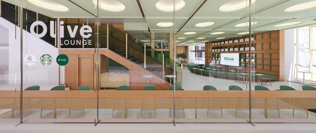 関西初「Olive LOUNGE 船場」 銀行・スタバ・シェアオフィス