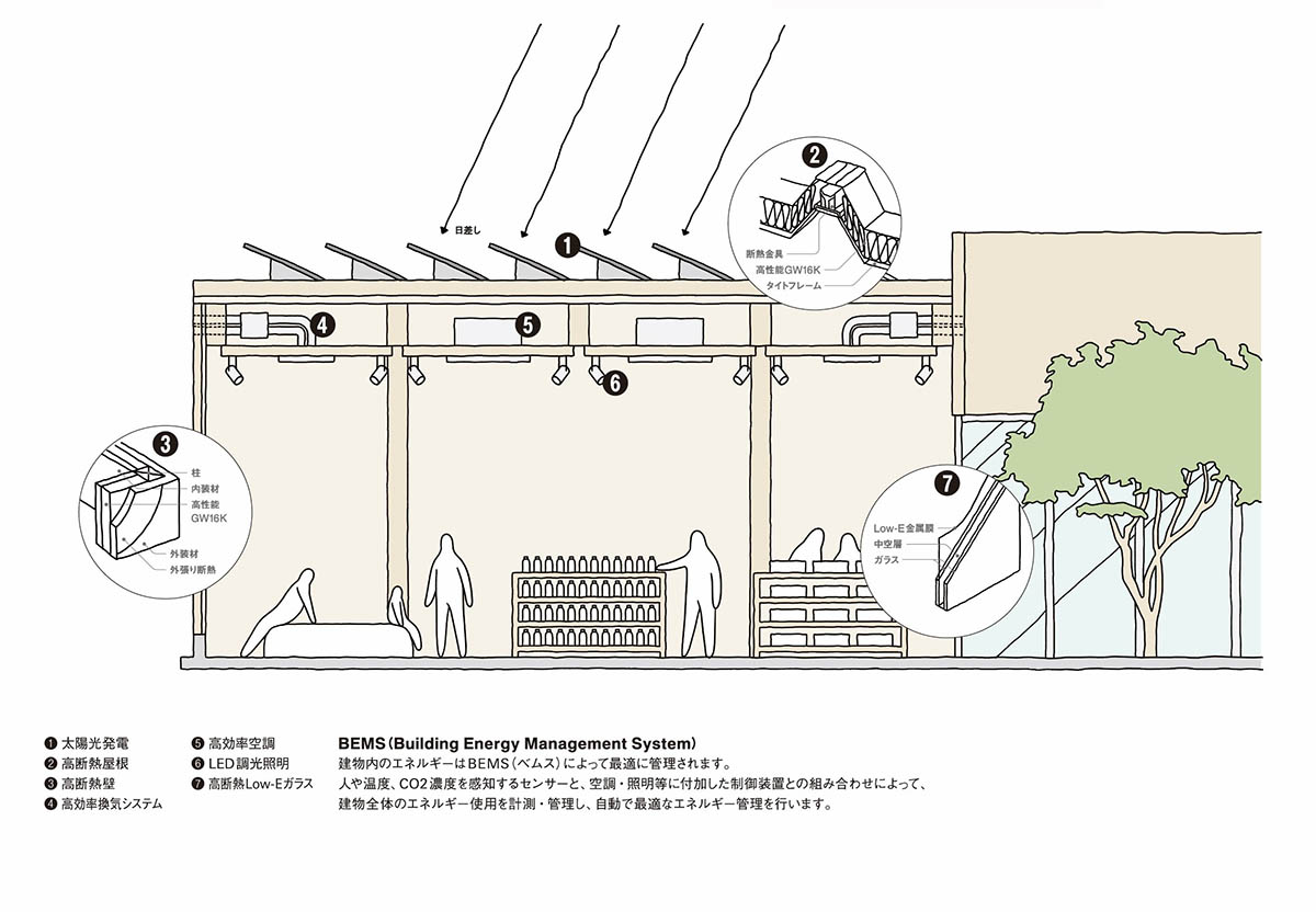 セブン、福岡に省エネ・創エネ・蓄エネ設備を備えた木造店舗