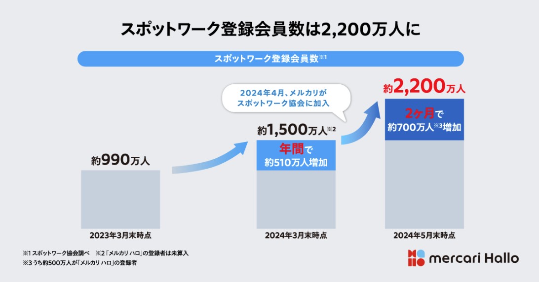 • スキマバイトの「メルカリ ハロ」、開始16日で100万人が登録