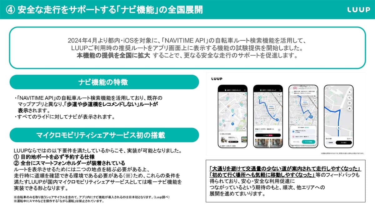 LUUP、歩道を走らせないナビ機能 交通ルール遵守を強化
