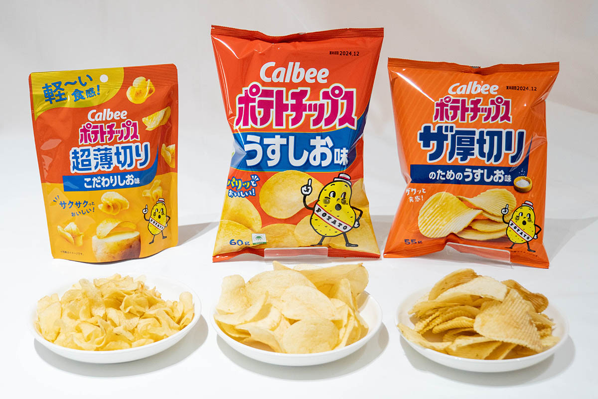 カルビー、極限まで薄くスライスした「ポテトチップス 超薄切り」(12/14)