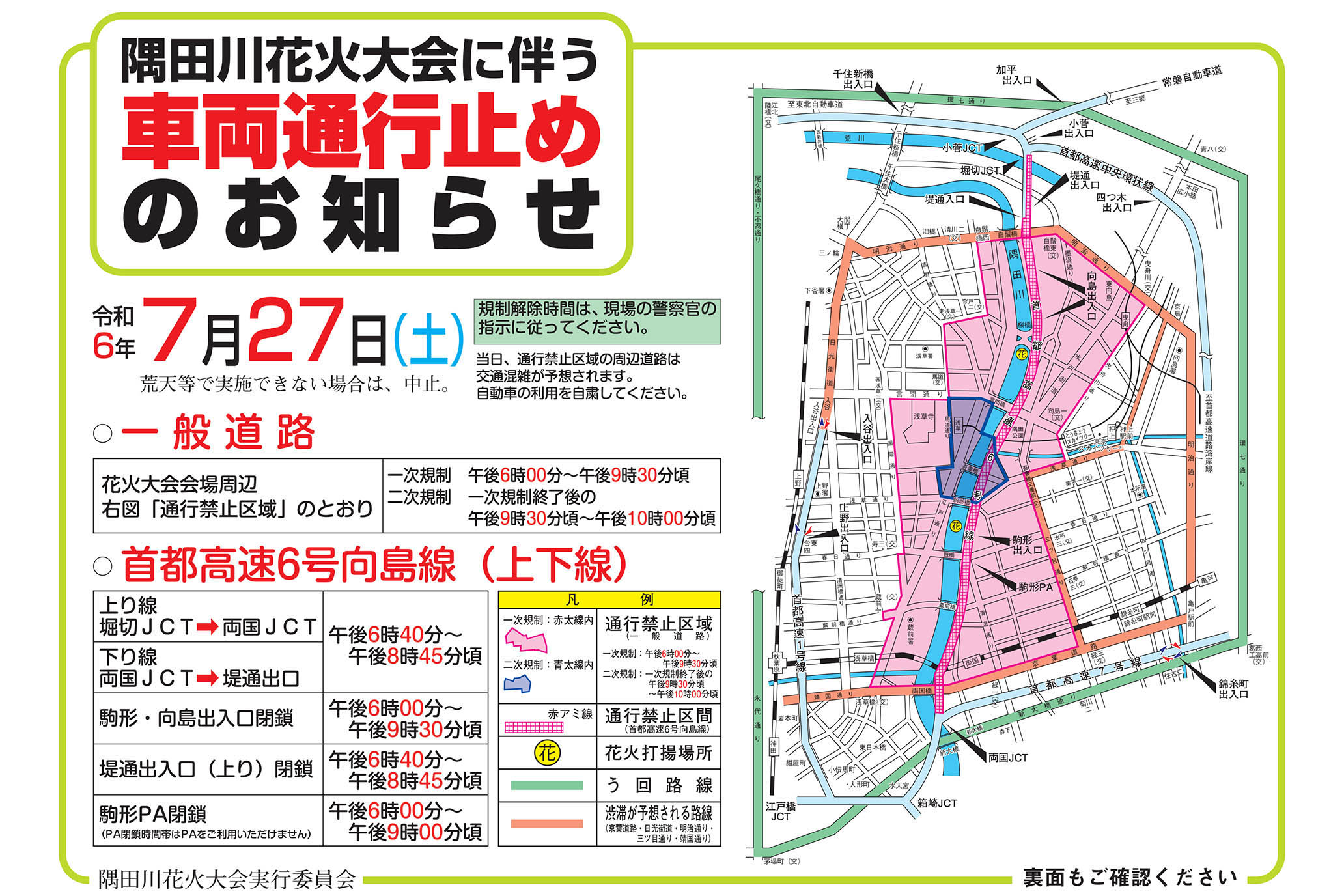 隅田川花火大会で27日は周辺車両通行止め 首都高も