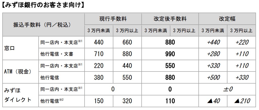 みずほ、両替手数料値上げ